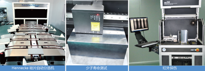 高佳太陽能對主材料多晶硅材料和半成品硅錠進(jìn)行嚴(yán)格的質(zhì)量控制;對關(guān)鍵輔材料線切用碳化硅砂和切割液進(jìn)行精確測量、監(jiān)控與分析;以獲得低成本高質(zhì)量的硅片。對成品硅片,采用世界先進(jìn)的、梅耶博格Hennecke系統(tǒng)的硅片自動分選機(jī),高佳出品的每一片硅片都會經(jīng)過Hennecke硅片自動分選機(jī)的檢驗,對硅片的質(zhì)量進(jìn)行嚴(yán)格的控制。
